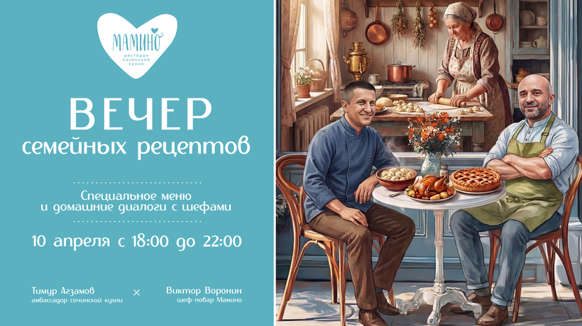 «Мамино» – это уютный, современный семейный ресторан сочинской кухни. Здесь всегда тепло, как дома, гостеприимно как на Кавказе и заботливо как в кругу семьи. Сочинская кухня – это вкусная домашняя кухня с душой для всех!